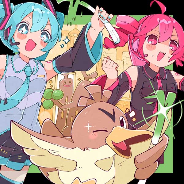 はちゅねミク & カモネギ & ガラルカモネギ & ネギガナイト & カラカラ & サルノリ & カヌチャン